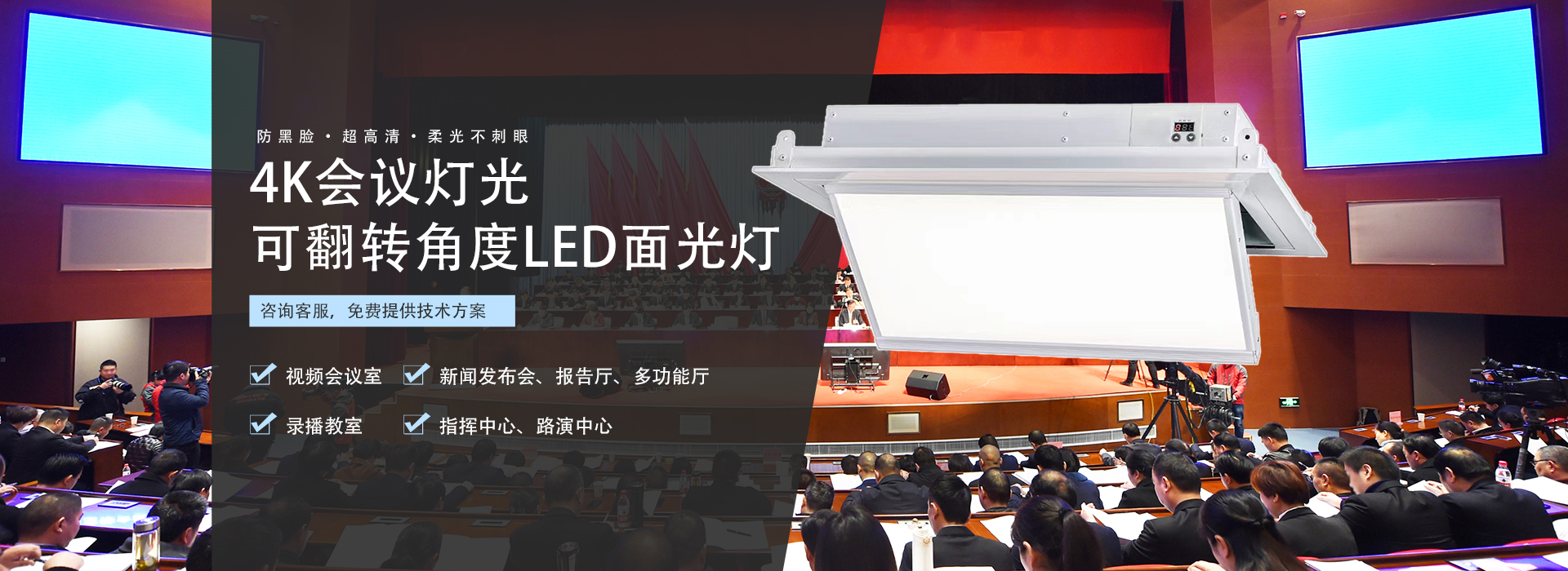 • 360°旋轉(zhuǎn)面光燈視頻會(huì)議室專用平板柔光燈